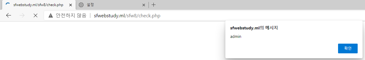 페이지 로딩이 끝난 후에는 다시 켜준다. 그리고 <script>alert('admin')</script> 입력해준다.