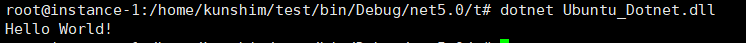 그리고 dotnet publish -r linux-x64 를 입력한다. publish 이후에는 /bin/Debug/net5.0(혹은 다른 버전)/linux-x64 에 publish 폴더가 생긴다. 이 폴더의 내용을 통째로 복사해서 우분투에 넣어준 뒤 ELF를 실행시키면 닷넷이 안깔려있어도 실행이 된다. 그러나 Hello World 출력하는 프로그램이 72mb나 먹는것은 말도 안되기 때문에 우리는 (프로젝트 이름.dll) 과 (프로젝트 이름.runtimeconfig.json) 파일만 우분투로 옮겨주면 된다.