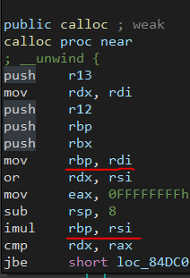 __malloc_hook에 leave ret가젯이 있다는 가정하에, calloc의 rdi를 통해 rbp 조작이 가능하다. 따라서 스택피벗을 할 수 있다. 보통 두번째 인자는 1인데, imul을 통해 rbp에 rsi를 곱할 수 있기 때문에 만약 받을 수 있는 길이제한이 있고, 두 인자를 모두 컨트롤 가능하다면 적절하게 계산해서 사용하면 된다.