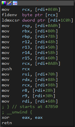 rdi만 컨트롤 가능하면 rsp 컨트롤이 가능해 ROP를 할 수 있는 유용한 가젯이다. 문제에서 활용은 __free_hook에 가젯을 넣거나 fake vtable에 이녀석들을 채워서 컨트롤 했던 것 같다. __free_hook에 넣으면 rdi가 힙의 주소이기 때문에 매우 쉽게 컨트롤 할 수 있다.