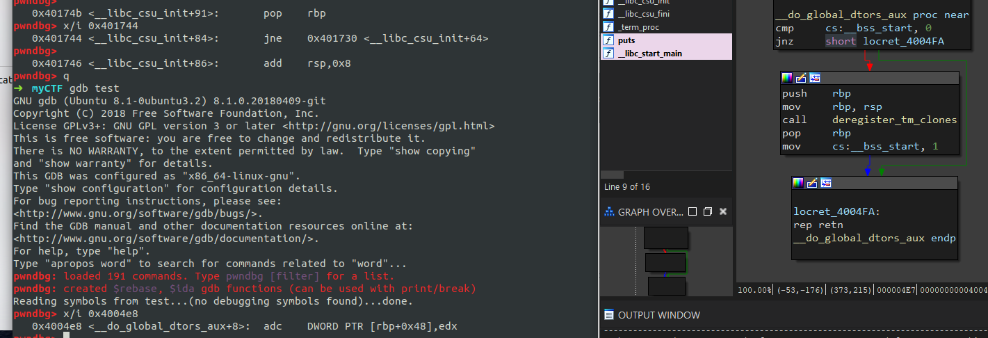 16.04에서 컴파일 된 녀석은 거의 있는 것 같은데, 자세한 것은 모르겠다. 저 _DO_GLOBAL_DTORS_AUX 의 처음 jnz +1 에 위치하고 있으며 add [rbp+0x48], edx 를 하는 녀석이다. 이 녀석을 어디에 쓰냐? 하면 leak이 안되있는데 ROP가 가능해서 rbp변조가 가능한 상황이다. 예를들어 bss로 스택피벗을 했다고 하고 이곳에서 어떤 복잡한 함수를 실행하면 bss에 그 함수의 기록들이 남을 것이다. 이것들을 이용해서 leak은 할 수 없지만 오프셋은 동일하기 때문에 특정 녀석에 더하거나 빼기 연산을 해주어 이를 원가젯으로 맞추고 실행해주는 것이다.